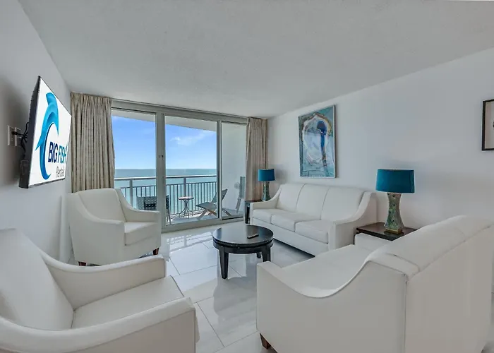 The beachfront 130 m² Oceanfront Condo W Pools & Sea View Myrtle Beach lies in the Downtown Myrtle Beach district of Myrtle Beach and offers swift access to the Second Avenue Pier, which is just 5 minutes' walk away. Offering a patio, this spacious apartment also features a private pool for guests ultimate relaxation.
